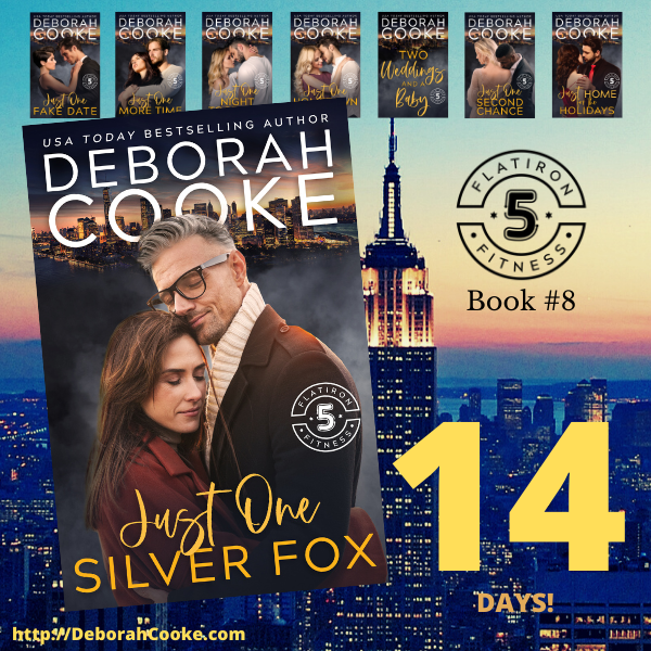 Just two weeks until Just One Silver Fox, Jacquie and Pierce’s story, is published! I’m so excited about this one, book #8 in the Flatiron Five Fitness series. The pre-order is available at most portals, and don’t forget that book #1 in the series, Just One Fake Date, is free.