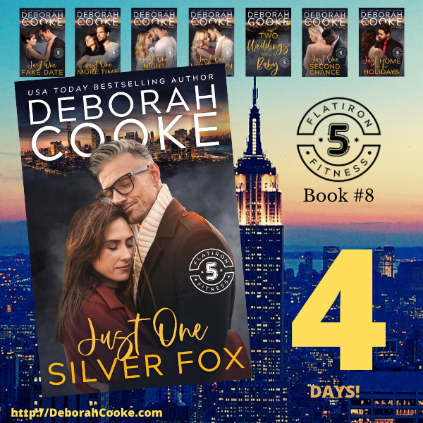 Just four days until Just One Silver Fox, Jacquie and Pierce’s story, is published! The pre-order is available at most portals, and don’t forget that book #1 in the series, Just One Fake Date, is free.
