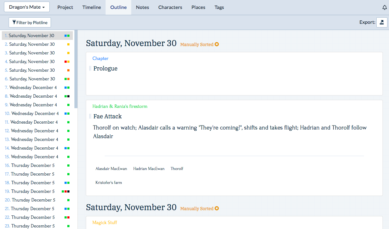 There are other options to display your plot as well. I use the timeline, but here’s the outline that can be compiled from the timeline.