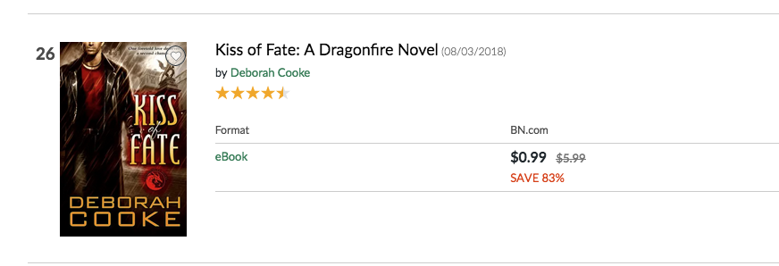 Yesterday, I had a BookBub Featured Deal for Kiss of Fate, book 3 of the Dragonfire Novels, discounted to 99¢. This book has never been on sale before, so I had high hopes for the results.